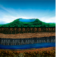 長白山玄武巖——火山噴發(fā)出的巖漿冷卻后凝固而成的一種巖漿巖,含45%--50%二氧化硅,具有良好的儲水、導水能力。