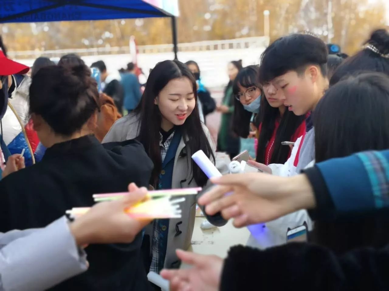 ? ? ? ?活動現場同學可以通過分享朋友圈集贊的形式領取泉陽泉為同學們精心準備的整套熒光設備(包括:海綿熒光棒,皇冠燈,手折熒光棒),有沒有棒棒噠