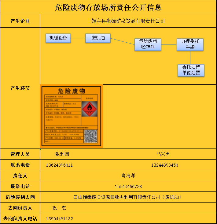 危險廢物存放場所責任公開信息